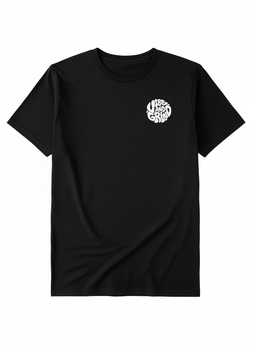 • Screen-printed “Vibe & Grind” design on front and back